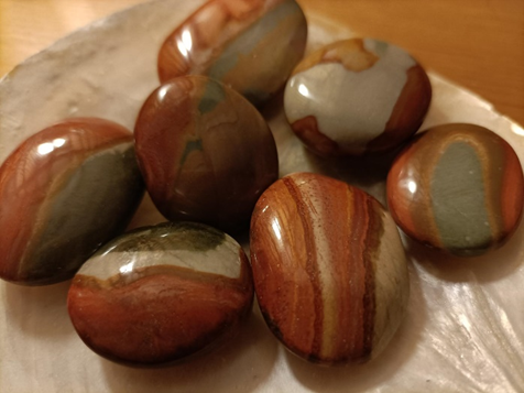 Rode jaspis stimuleert bloedsomloop en energiestroom. Jaspis in het algemeen helpt bij aandoeningen van geslachtsorganen, darmklachten en spijsverteringsklachten.*